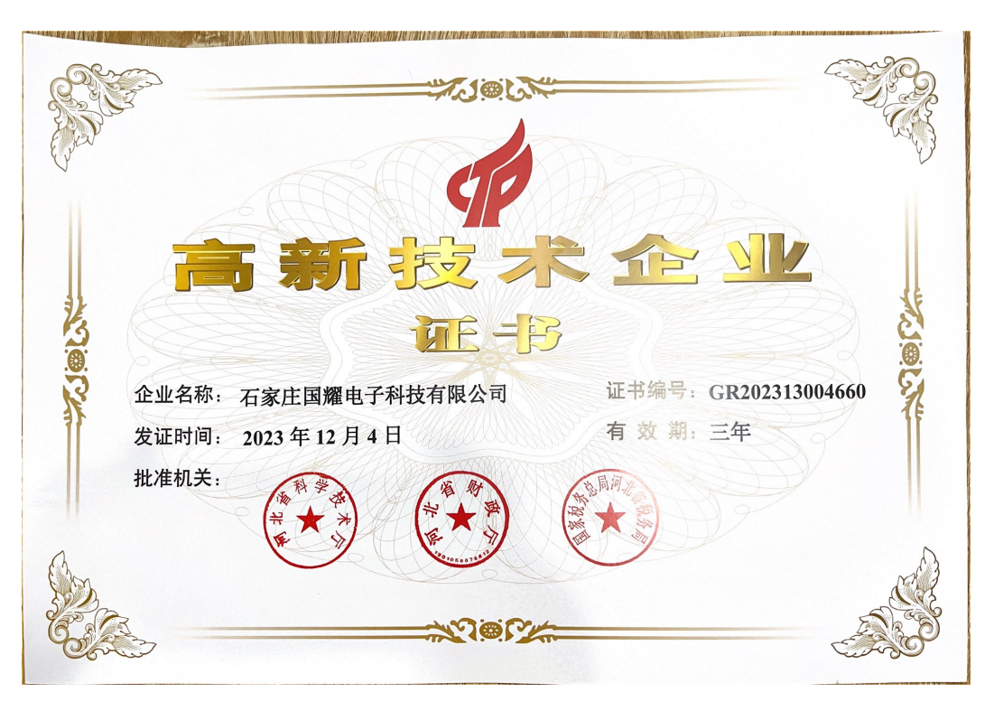 石家莊國耀電子科技有限公司成立于1998年,注冊資本1000萬元,位于石家莊市高新技術(shù)產(chǎn)業(yè)開發(fā)區(qū),是國家高新技術(shù)企業(yè)和軟件企業(yè)。